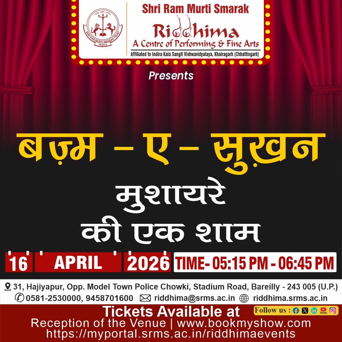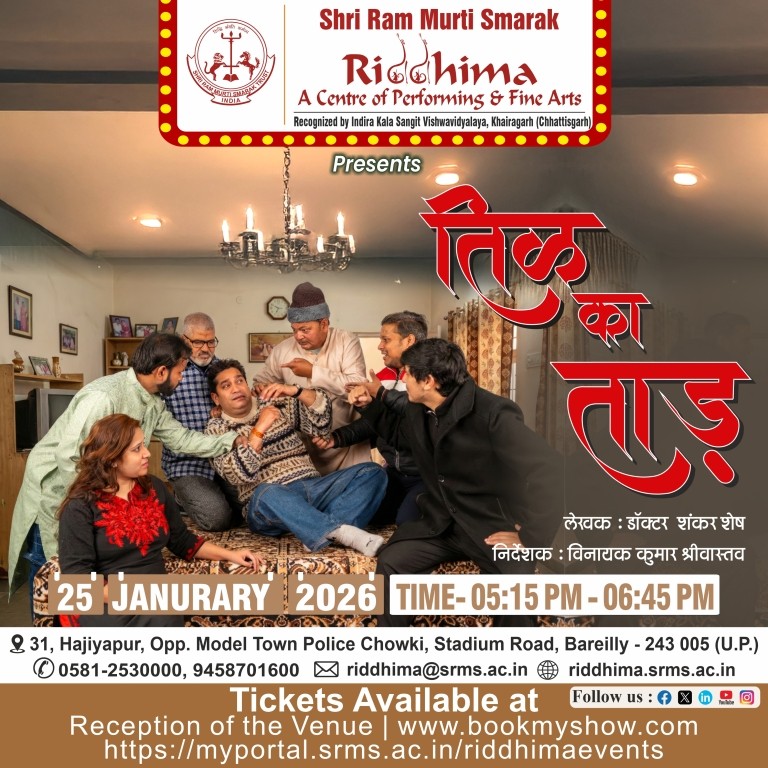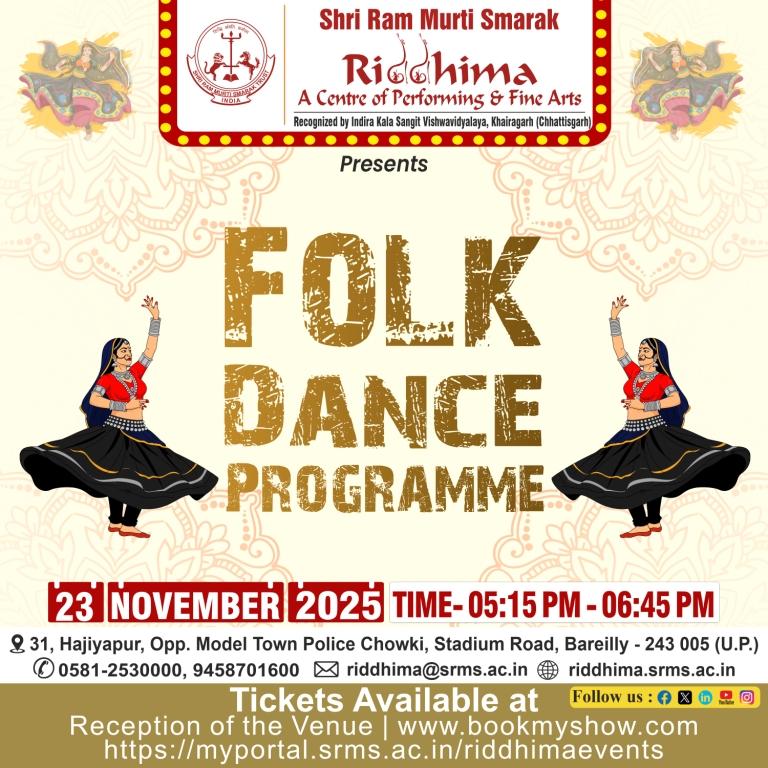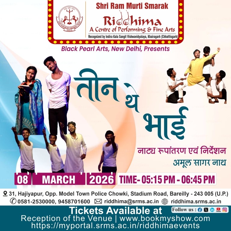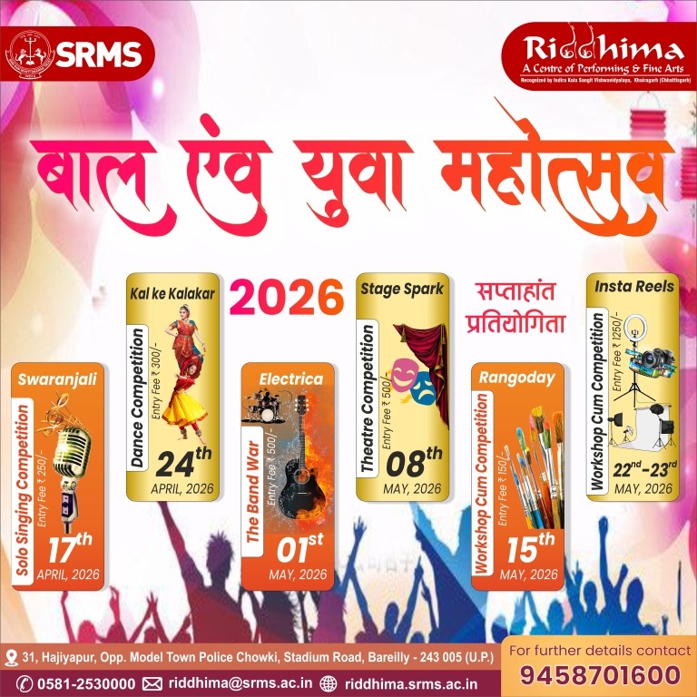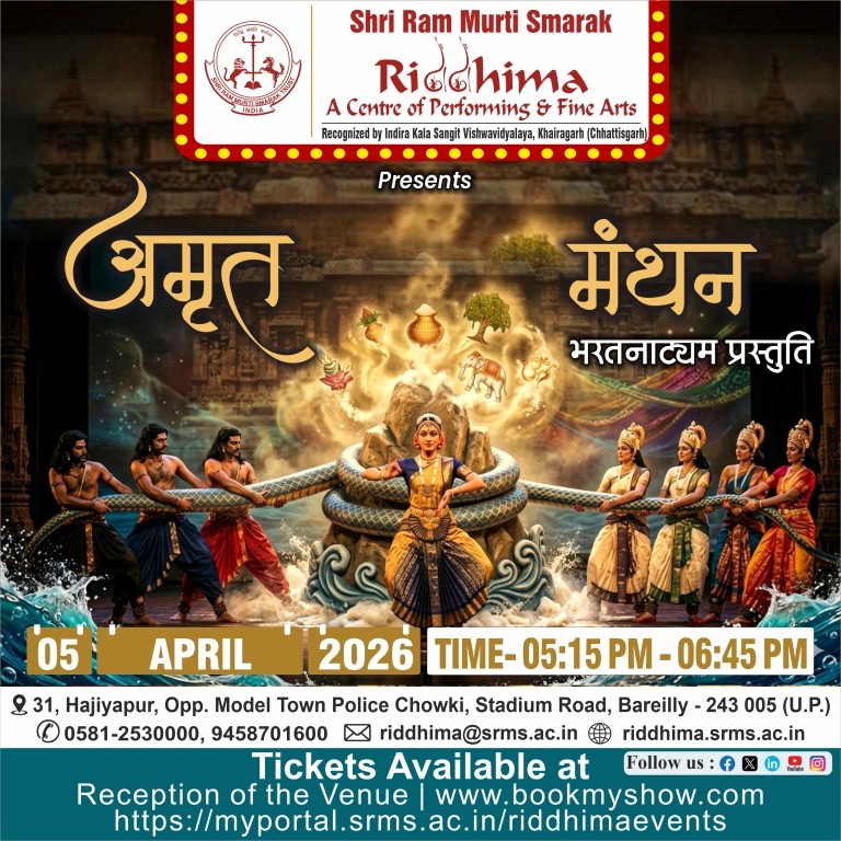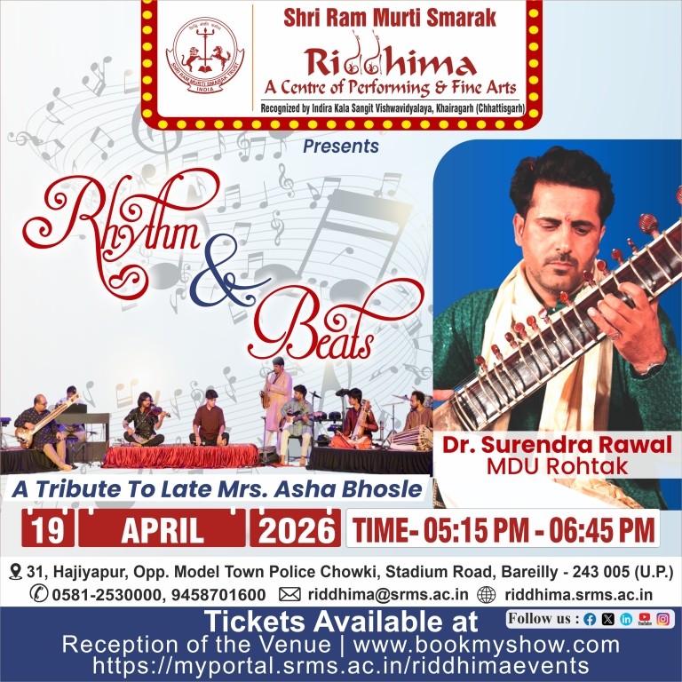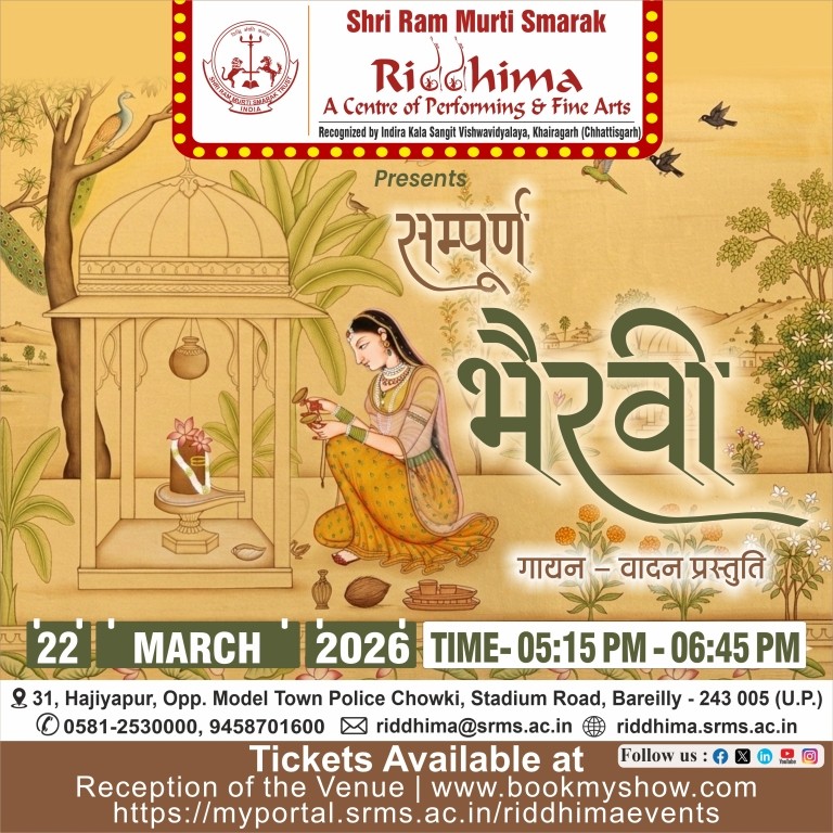 SRMS Riddhima – A Center for Performing and Fine Arts, is a tribute to Shri Ram Murti Ji, for his special inclination towards art and culture, by Shri Ram Murti Smarak Trust. The centre is affiliated to Indira Kala Sangit Vishwavidyalay (Khairagarh), Chattishgarh. The main objective of this Centre is to preserve the cultural heritage of Ganga Jamuni tradition of Bareilly, for the revitalization in the field of art and culture, as well as to attract the youth towards classical dance, classical music (Vocal and Instrumental), fine arts, Drama and theater.