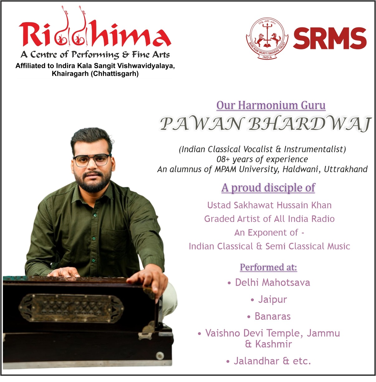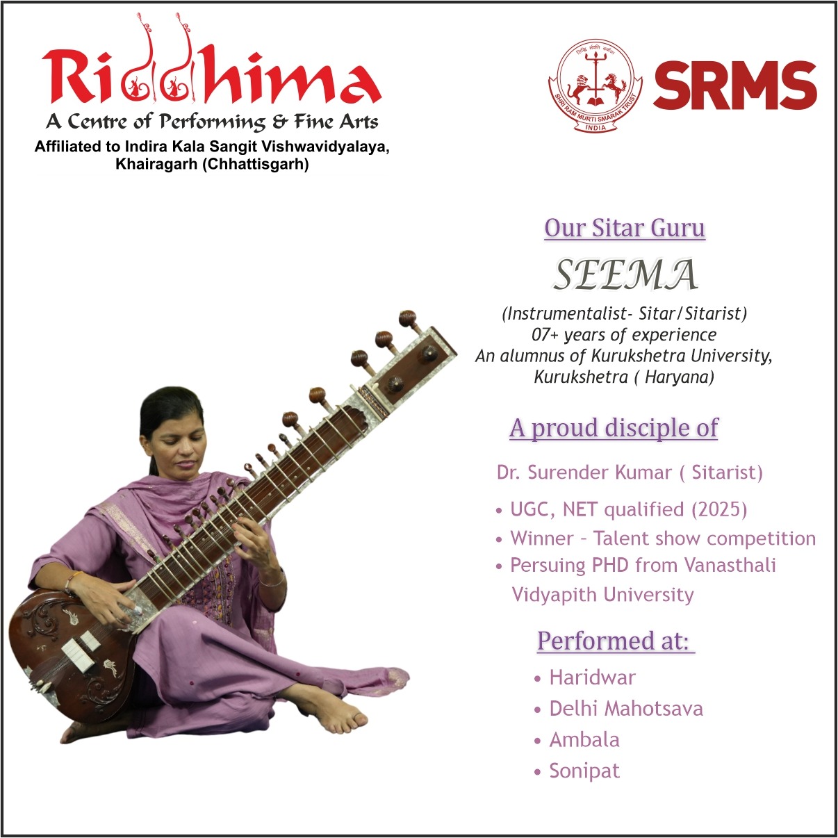 SRMS Riddhima; A Centre of Performing & Fine Arts Bareilly is established and run by SRMS Trust. The centre is affiliated by Indira Kala Sangit Vishwavidyalay (Khairagarh), Chattishgarh.