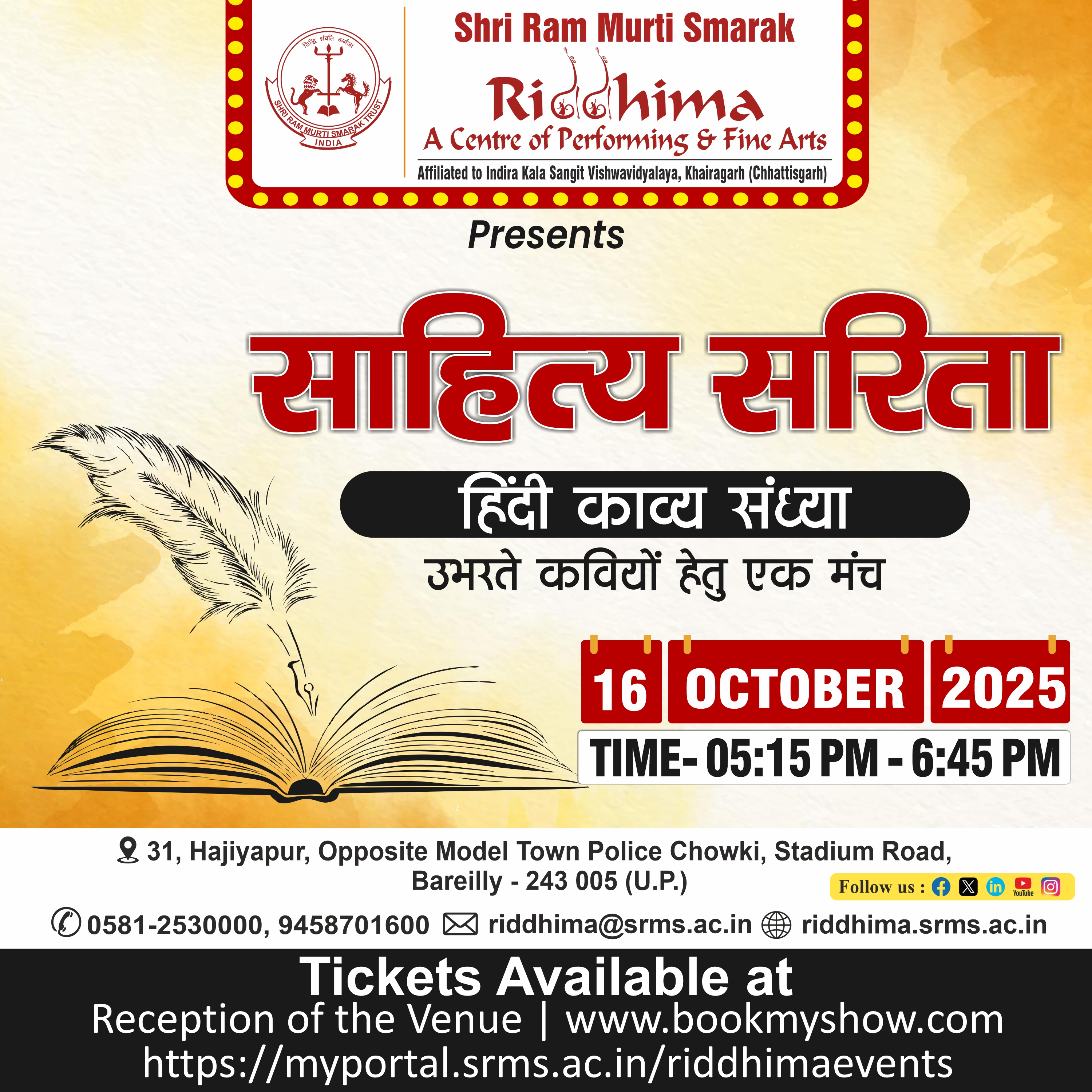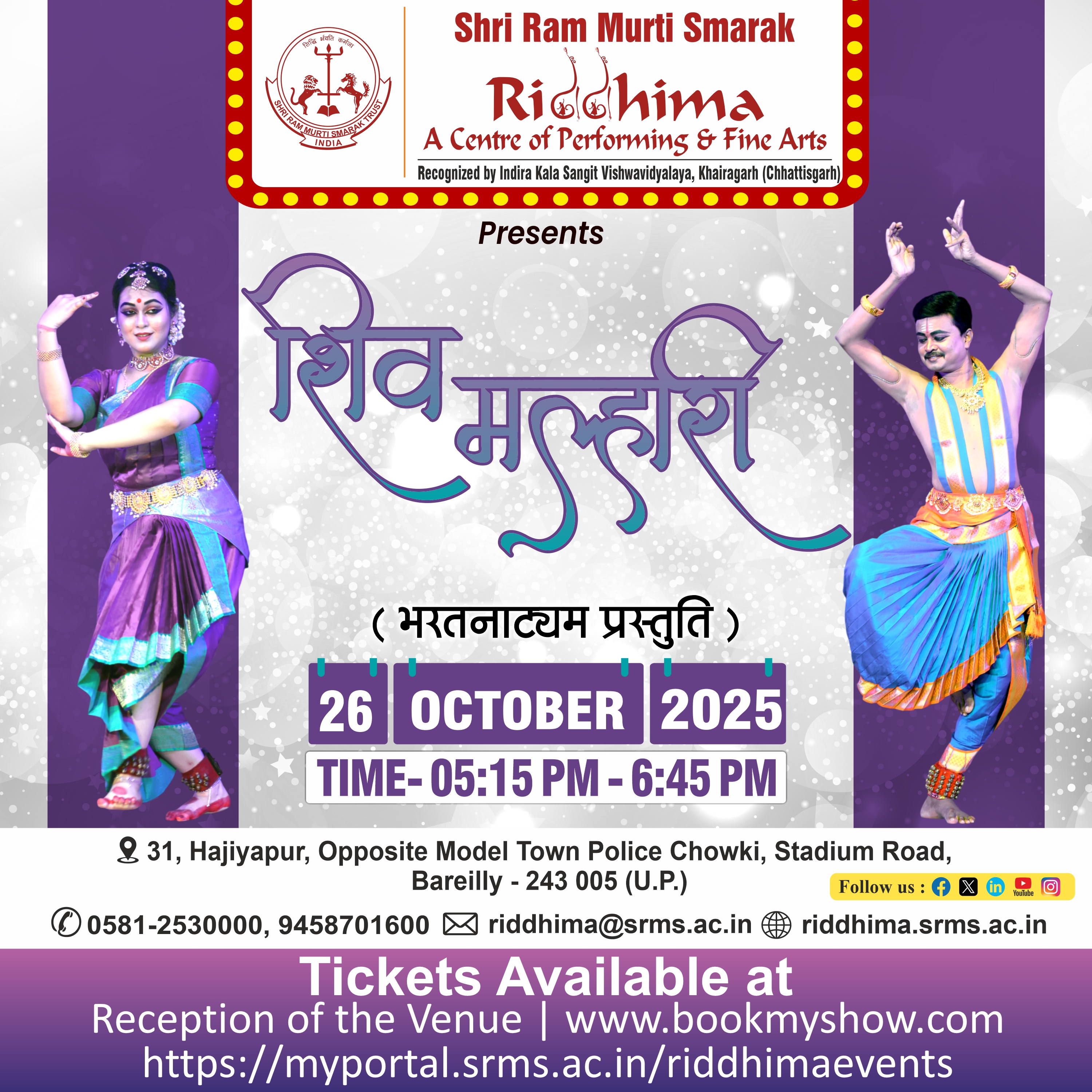 SRMS Riddhima– A Center for Performing and Fine Arts,is a tribute to Shri Ram Murti Ji, for his special inclination towards art and culture, by Shri Ram Murti Smarak Trust promoting the Ganga Jamuni Tradition.